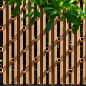 This Pavillion is adjusted from the one-story shed in the front area of the original building which was constructed with a concrete roof without walls. A wooden slat wall enclosed on all sides of the semi-enclosed space Pavillion is introduced to make a disconnect from the outside to incline the customers’ mood before entering the restaurant and meet the considerable garden inside.